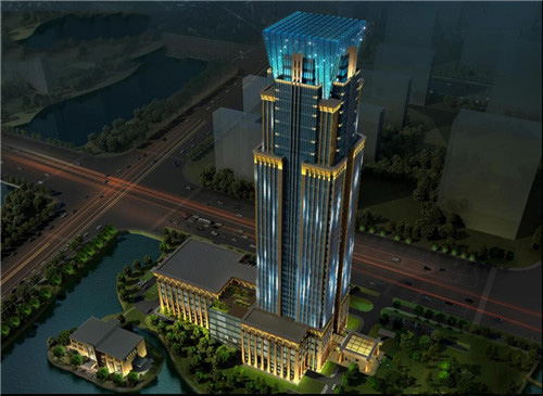 通过安装在建筑以外的投光灯照射建筑表面,在实现节能环保的同时整体展现建筑的本体造型、立体感和材质。投光照明要注意对建筑立面照度和亮度的把控,同时要对照明灯具的投光方向和角度合理设置,再者尽可能隐蔽投光设备安装点。此外,尽可能使用清新简洁的同种色系灯光,除了玻璃幕墙意外的公共建筑都可以使用投光照明,但住宅建筑则要慎重使用投光照明。